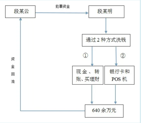 2013—2016年,段某云将获取的非法所得交由其胞弟段某明管理。期间,段某明多次将该非法资金在其个人账户及张某妹、杨某湄、蒋某举等人的账户间频繁划转、现金存取及购买理财产品,并利用pos机放高利贷和转移资金,涉嫌洗钱资金合计640余万元。