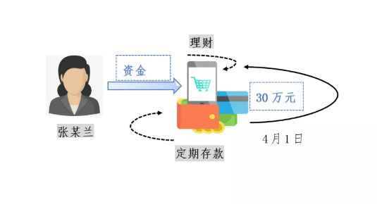 (三)通过银行转账、定期存款、购买理财等方式掩饰、隐瞒贩毒所得。张某强通过微信账户收取的毒资,有67万元通过微信提现、银行及支付宝转账等方式过渡到张某兰银行账户,其中4万元分二次提现到银行卡后与之前毒资合计11万元被存入定期,随即张某兰将部分非法所得资金、定期存款到期资金、理财赎回资金等一同用于购买银行理财产品。 如张某兰在2021年4月1日,将流入毒资1万元,连同之前的定期存款到期资金、到期理财产品赎回资金,用于购买另一理财产品,合计金额300000元。