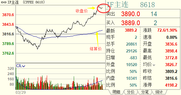举例:下图中蓝线为结算价,为全天的加权平均价。