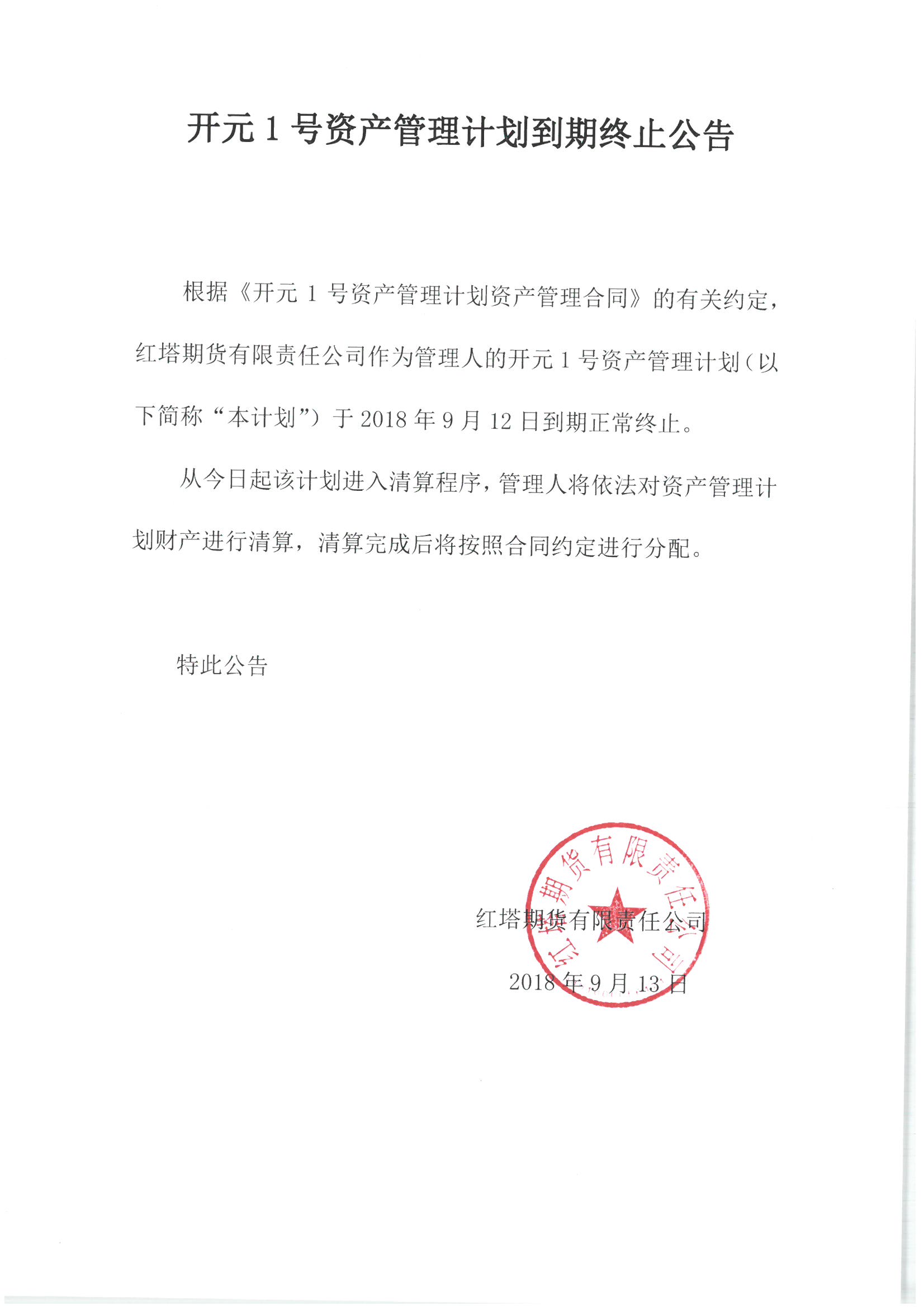红塔期货-涵德景兴1号集合资产管理计划初始募集期延长公告