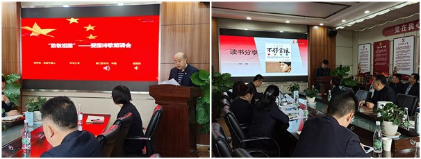 主题党日当天,还开展了“致敬祖国”——爱国诗歌朗诵会。宣传委员刘兴文及各党小组长作为党员代表分别朗诵了《我骄傲,我是中国人》《中华少年》《我们爱你啊,中国》《祖国赞》四篇诗歌。活动现场,朗诵者们时而激情澎湃,时而浅吟低诵,伴随着或激昂或舒缓的音乐,声情并茂地进行朗诵,用心抒发出最纯粹最热烈的爱国之情,赢得了现场阵阵掌声。