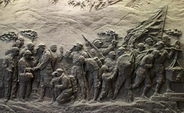 1936年10月,中国工农红军第一二四方面军在甘肃会宁胜利会师。红色的铁流,最终汇成了红色的海洋。1934年10月为了保存我党实力,打破敌人包围圈,8.6万名红军开始战略转移,踏上了两万五千里漫漫长征路,开始了世界历史上前所未有的壮举。血战湘江,四渡赤水,巧渡金沙江,强渡大渡河,飞夺泸定桥,鏖战独树镇,勇克包座,转战乌蒙山,在平均每300米就有一名红军牺牲的残酷斗争中,中国共产党人一路披荆斩棘,击退敌寇围追堵截,征服冰山雪岭,穿越沼泽草地。“革命理想高于天”,中国共产党将理想信念书写在厚重的史册上,书写在横亘的中国土地上,用血肉构筑了坚不可摧的红色长城。
